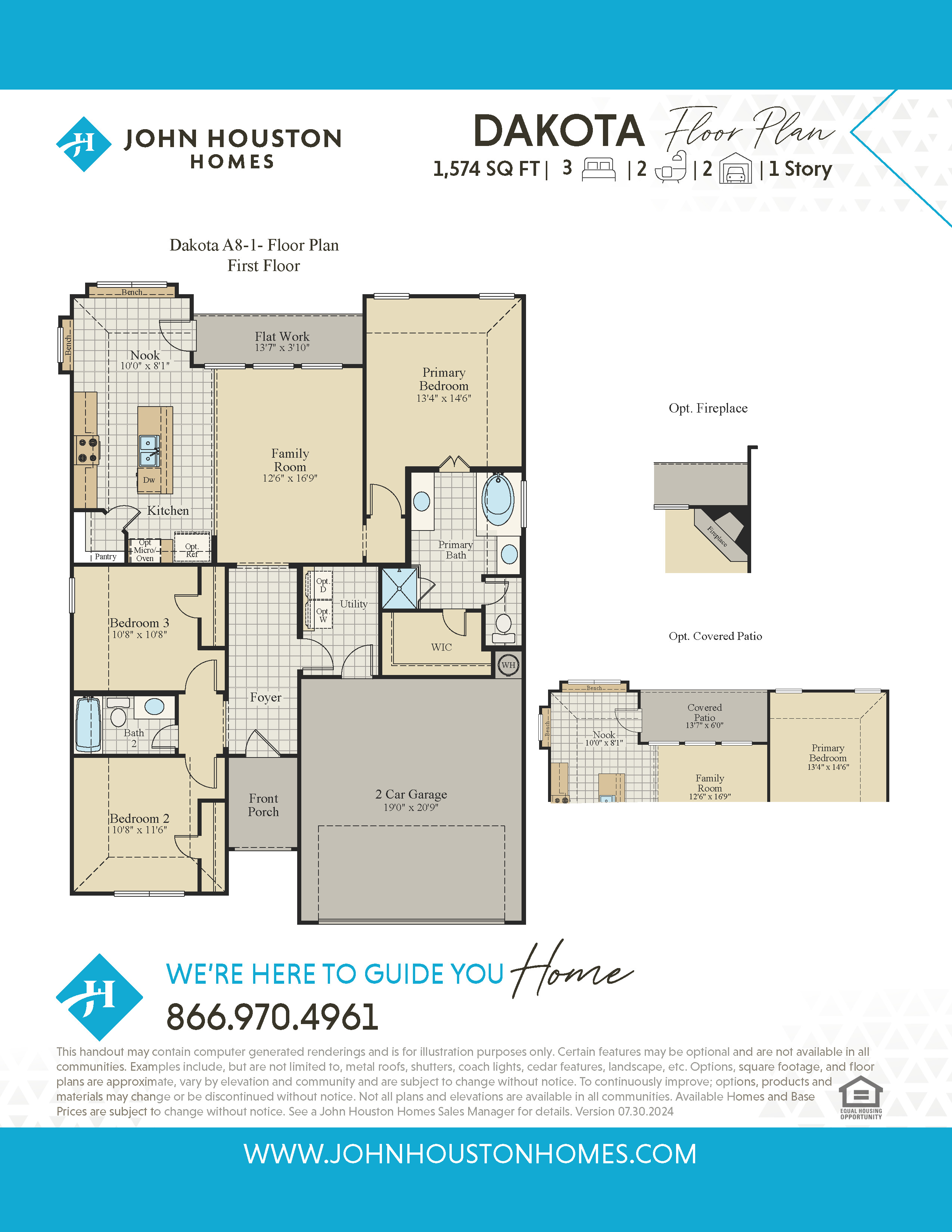 The Dakota new home floor plan includes 3 bedrooms with 2 full bathrooms and a 2 car garage. This plan features a large foyer area, large kitchen island overlooking the living area and a breakfast nook. Master bath suite features separate his and hers sinks and separate drop-in tub and walk-in shower. Options, square footage, room count, and room dimensions are approximate, subject to change without notice, and vary by elevation and community.