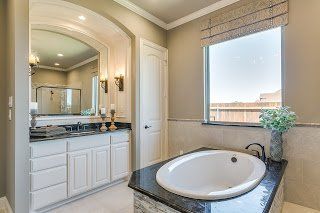 Next we head down the road to our previous Cabot Estates model, The Milan. Warm colors and tile accents give a classic Italian feel but my favorite is by far the coffee bar. Who wouldn't want to enjoy a nice espresso while getting ready for the day in this gorgeous master bathroom?