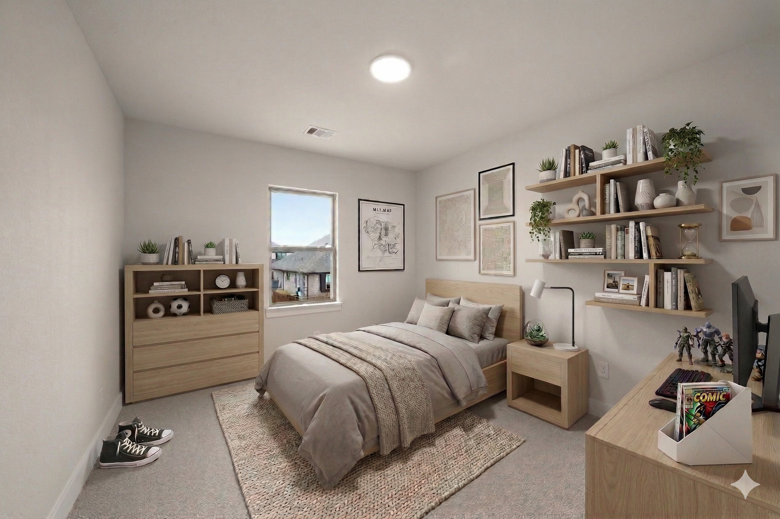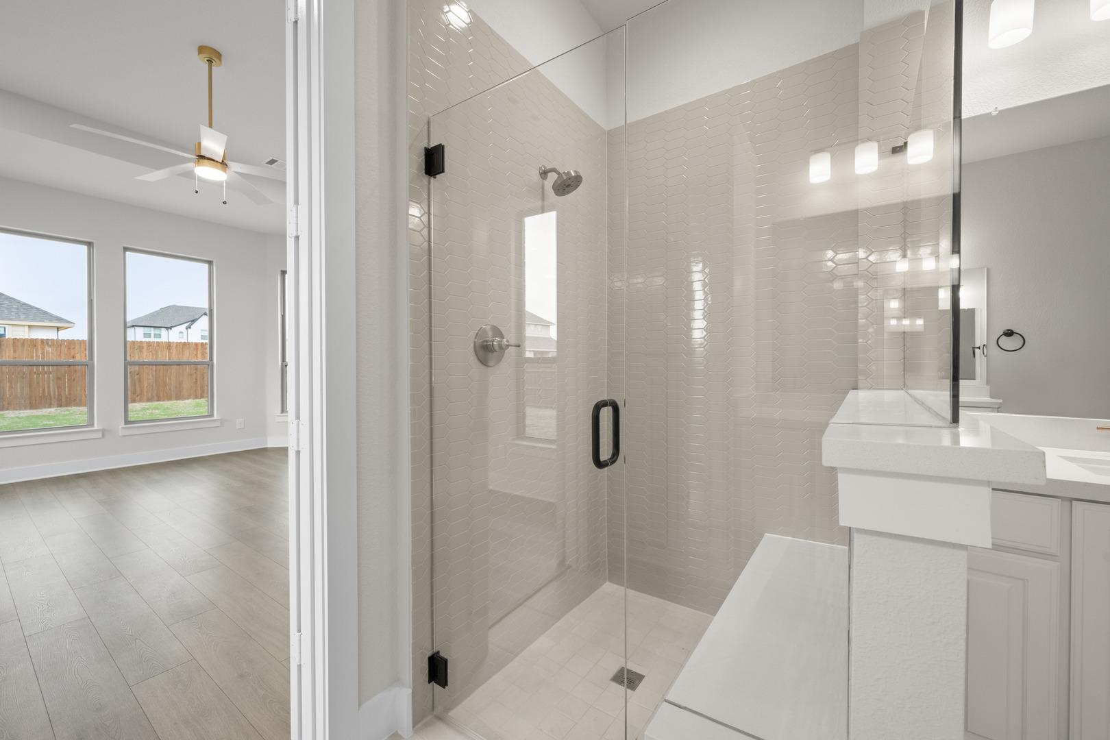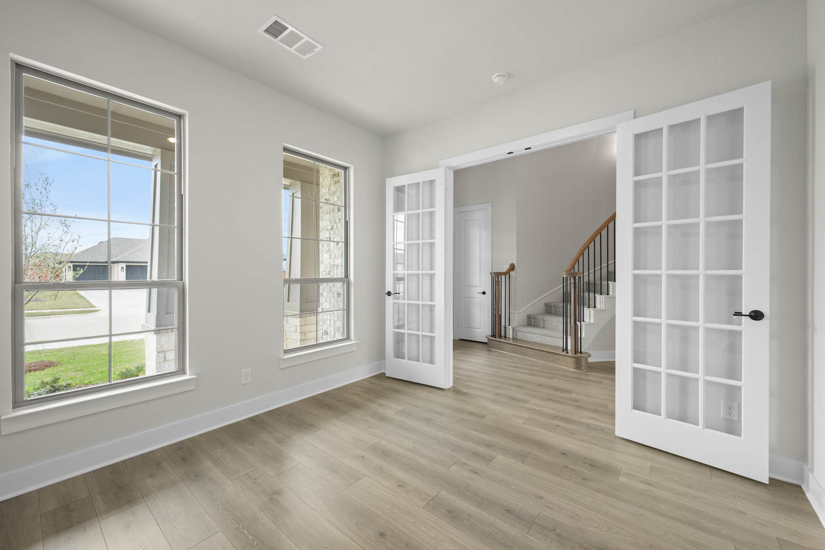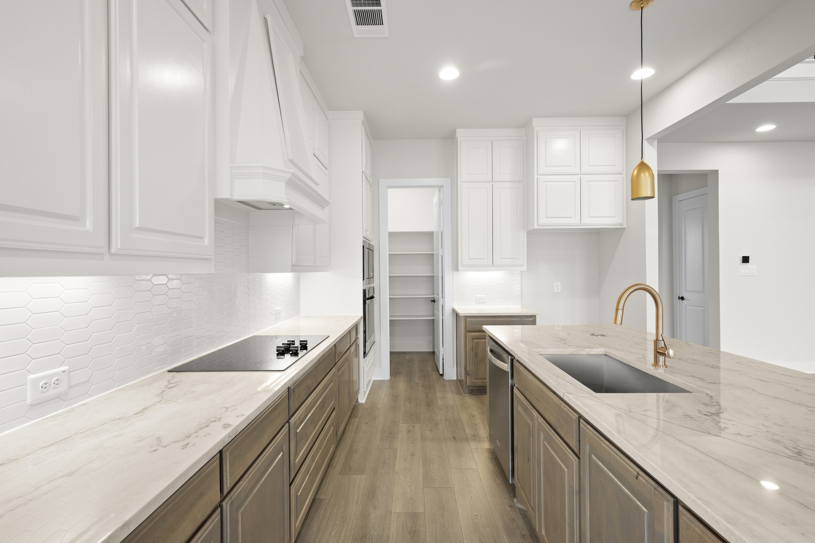 NEW JOHN HOUSTON HOME IN HAYES CROSSING. Welcome to your dream home, this beautiful 2 story smart home offers 4 bedrooms, 3.5 bath, study, game room, media room, and a 3 car side entry garage. This stunning chef's kitchen features a 36" electric cooktop, rollout spice and utensil cabinet, trash roll out, all-wood custom cabinets to ceiling, and a large extended island, creating an inviting atmosphere for cooking and entertaining along with the large extended patio. The primary suite is a true retreat, featuring a freestanding tub, luxury shower, dual vanities, and a spacious primary closet. READY JANUARY 2026.