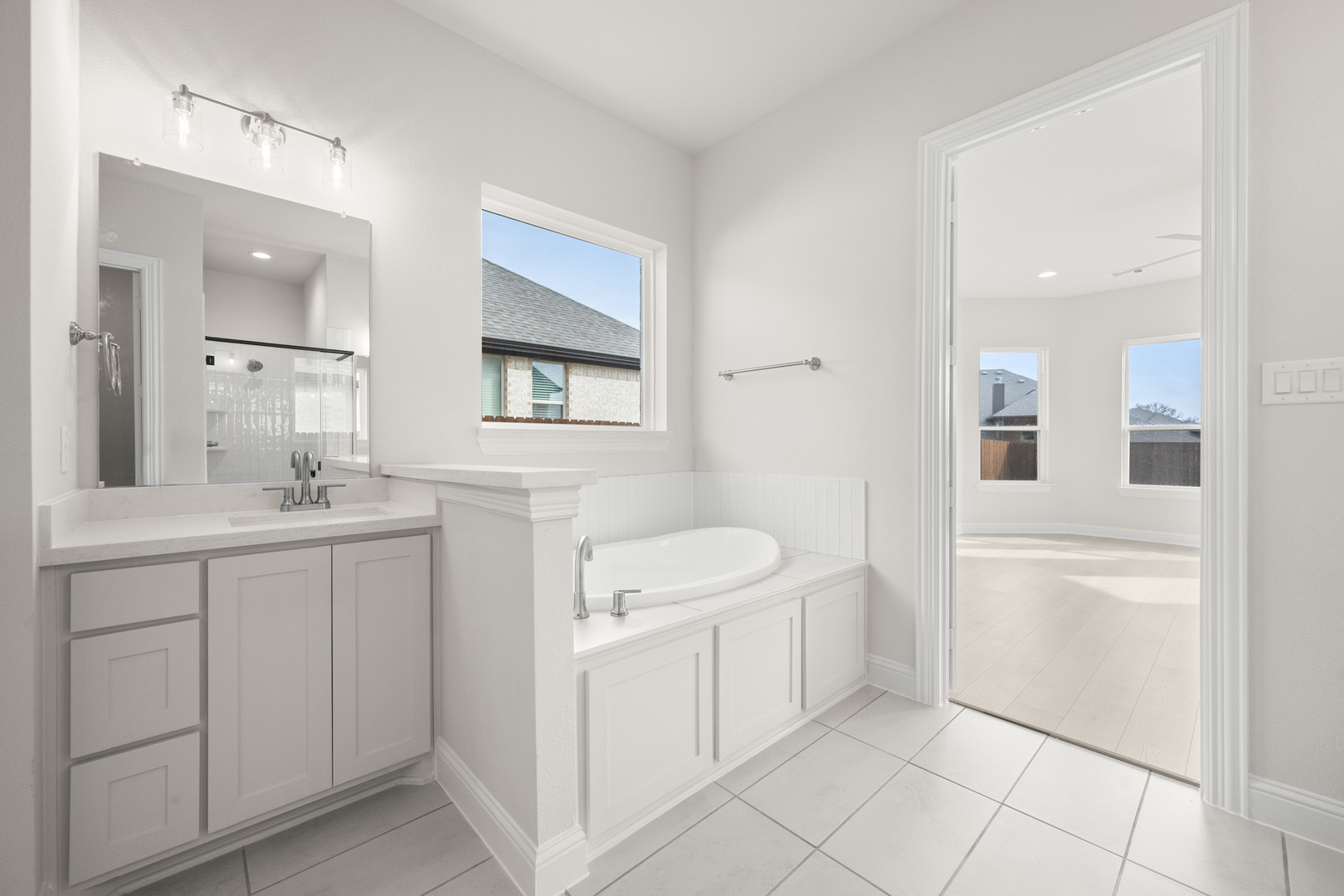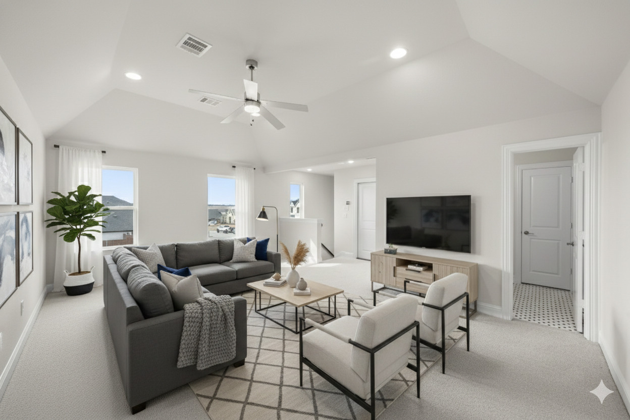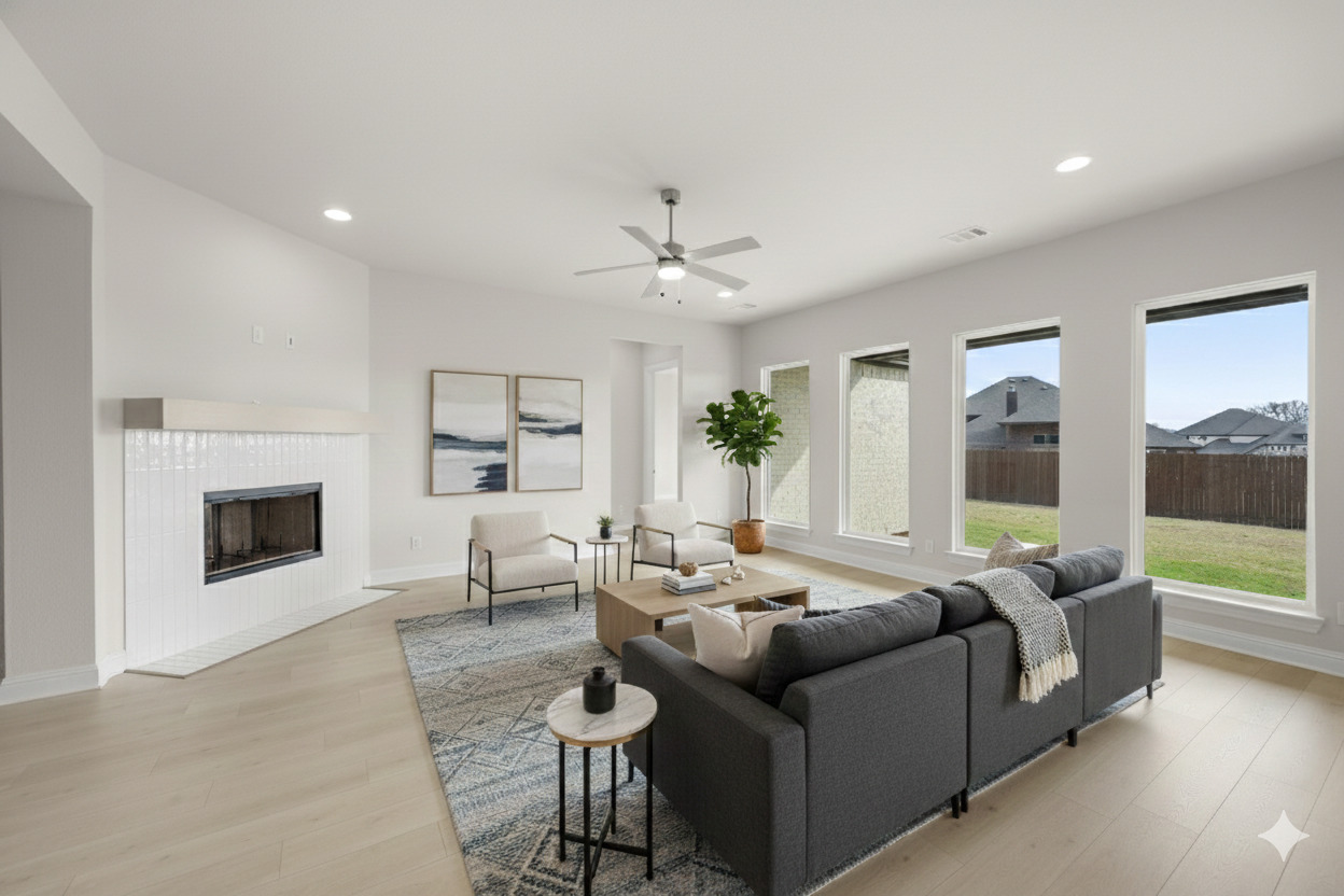 NEW JOHN HOUSTON HOME IN HAYES CROSSING! This beautiful smart home features 4 bedroom, 3 bath, and game room that offers comfort and convenience. As you step inside, you're greeted by a cozy wood-burning fireplace and four large windows, making the living room feel spacious and inviting. The kitchen features a 36 electric cooktop, cabinets to the ceiling for extra storage, undercabinet lighting, a wood-wrapped island, and a trash rollout. The primary suite is a true retreat, with its generous bedroom layout, dual vanity with a luxury shower, and a freestanding tub. READY IN DECEMBER!